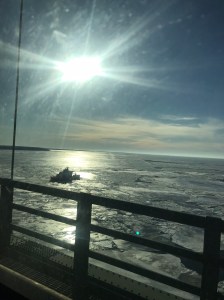 It would be hard to pick a highlight of the trip. Watching an icebreaker ship sailing in and out of the pillars of the Mackinac Bridge as we drove over the vast fields of sunlit ice chunks is definitely up there.